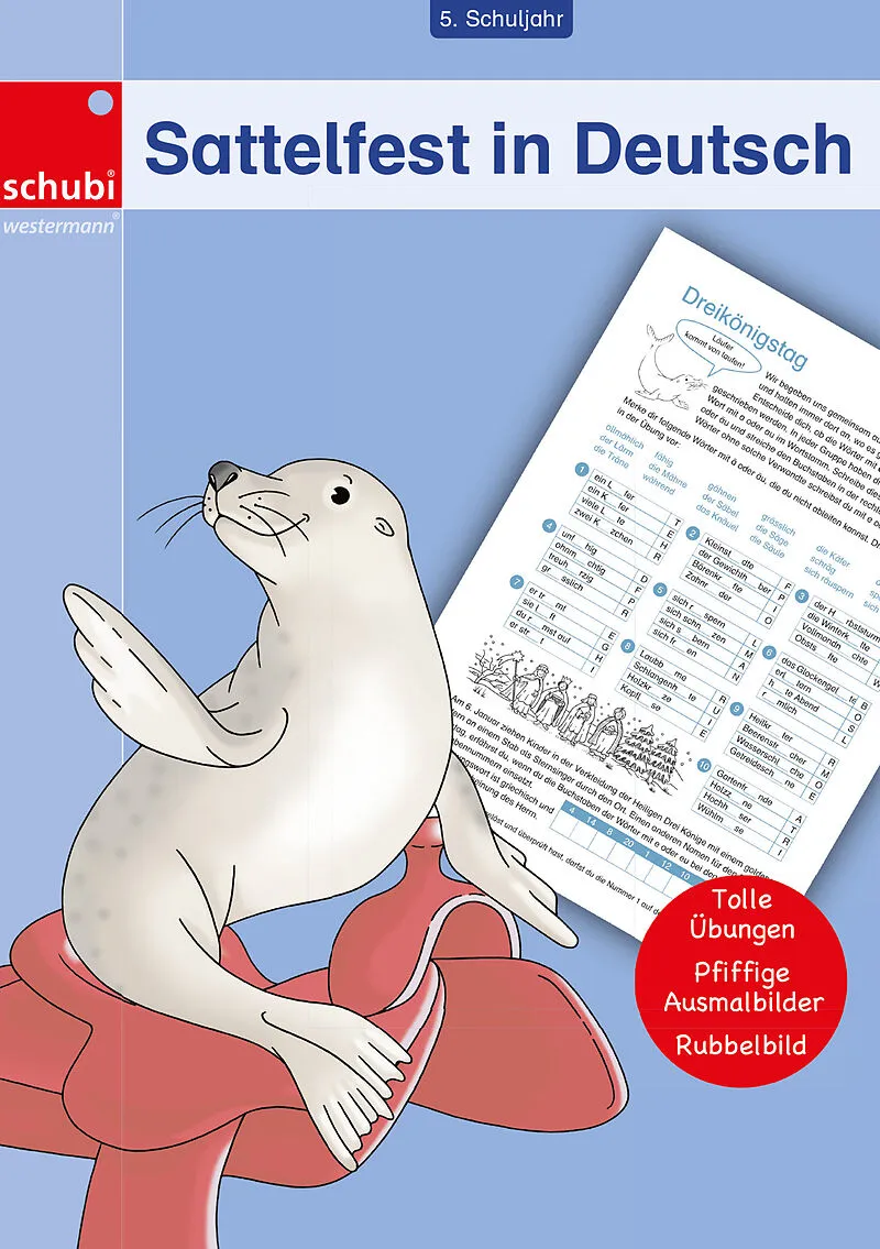 Ein buntes Deutsch-Übungsheft für das 5. Schuljahr, das wirklich motiviert! Das Sattelfest-Arbeitsheft ist schulbuchunabhängig und greift die wichtigsten Deutsch-Lerninhalte des 5. Schuljahres wie Rechtschreibung, Konsonantenverdoppelung, Dehnung, Trennregeln...