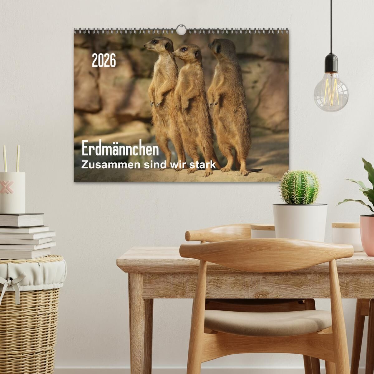 Erdmännchen Zusammen sind wir stark / CH-Version (Wandkalender 2026 DIN A3 quer), CALVENDO Monatskalender