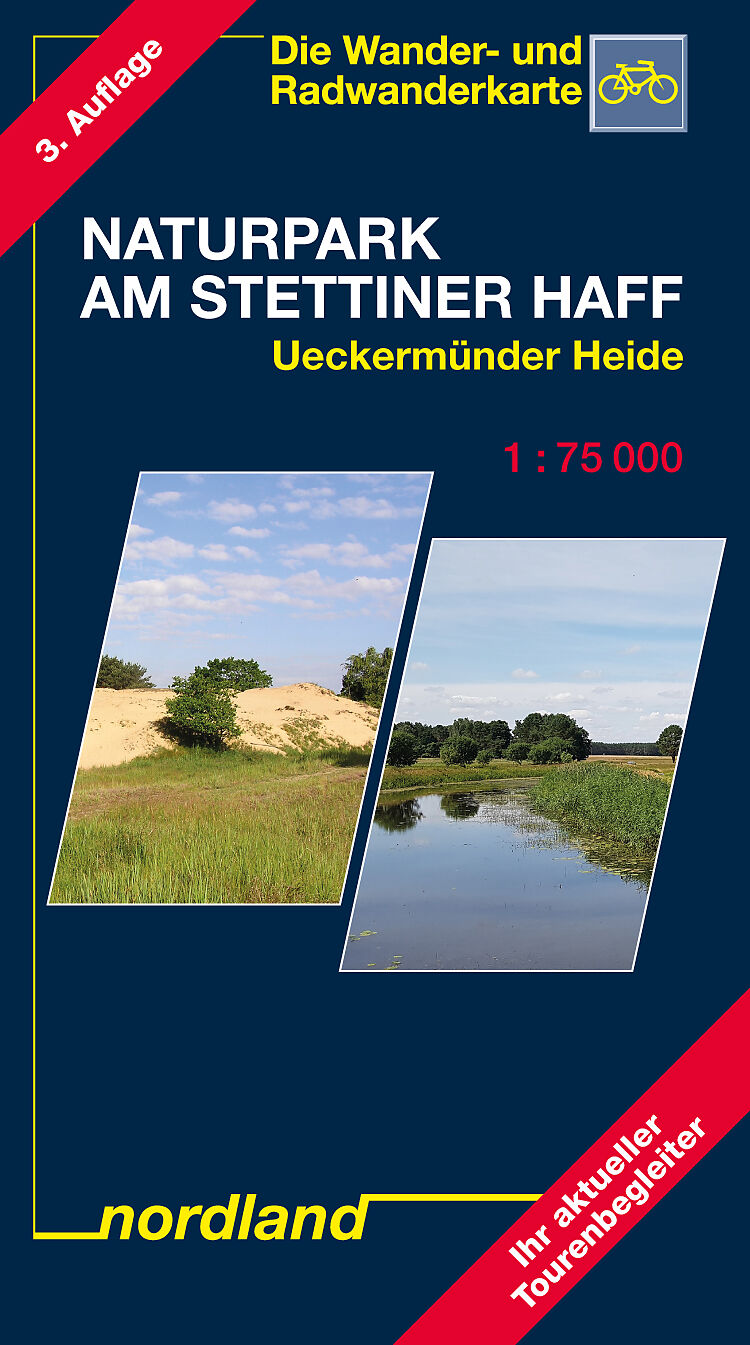 Diese Wander- und Radwanderkarte widmet sich dem seit dem Jahr 2005 bestehendem Naturpark Am Stettiner Haff. Das waldreiche Schutzgebiet ganz im Osten des Landes an der polnischen Grenze und südlich vom Stettiner Haff ist durch eine vielfältige Natur- und Kult...