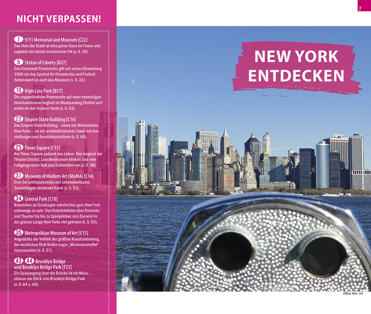 In der Weltstadt New York haben Besucher die Qual der Wahl: Berühmte Museen wie das Guggenheim, das MoMA oder das Metropolitan Museum of Art, weltbekannte Highlights wie die Freiheitsstatue, aber auch Zeugen der jüngeren Geschichte wie die World Trade Center ...