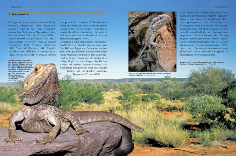 Wohl kaum ein anderes Reptil ist bei Terrarianern als Haustier so beliebt wie die Bartagame Pogona vitticeps. Ihren Siegeszug in der Terraristik verdankt sie nicht zuletzt ihrem interessanten Aussehen, dem spannenden Verhalten sowie ihrem ruhigen und sehr zutr...