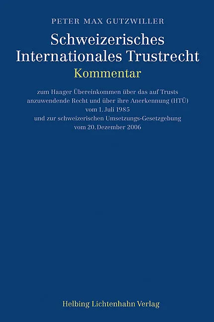 Kommentar zum Haager Trust Übereinkommen über das auf Trusts anzuwendende Recht und über ihre Anerkennung (HTÜ) vom 1. Juli 1985 und zur schweizerischen Umsetzungs-Gesetzgebung vom 20. Dezember 2006 Mit der voraussichtlichen Ratifikation des Übereinkommens und...