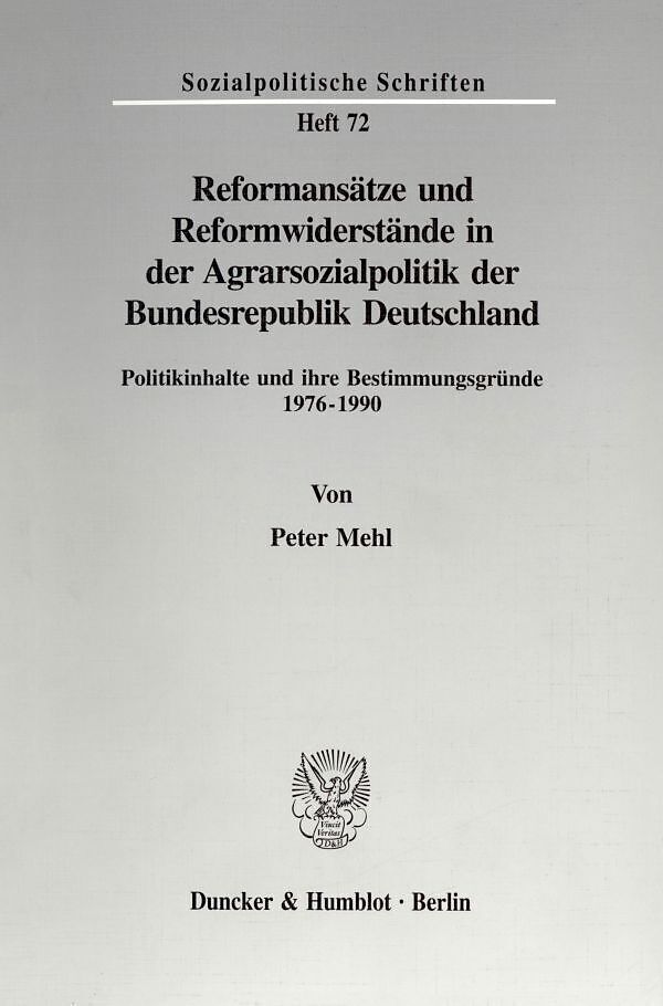 Wie die allgemeinen sozialen Sicherungssysteme, so war auch das Sondersystem der landwirtschaftlichen Sozialversicherung seit Mitte der siebziger Jahre Gegenstand intensiver Reformdiskussionen. Im Vergleich zu den allgemeinen sozialen Sicherungssystemen zeigte...