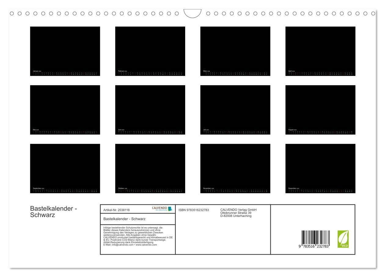 Bastelkalender - Schwarz (Wandkalender 2026 DIN A3 quer), CALVENDO Monatskalender