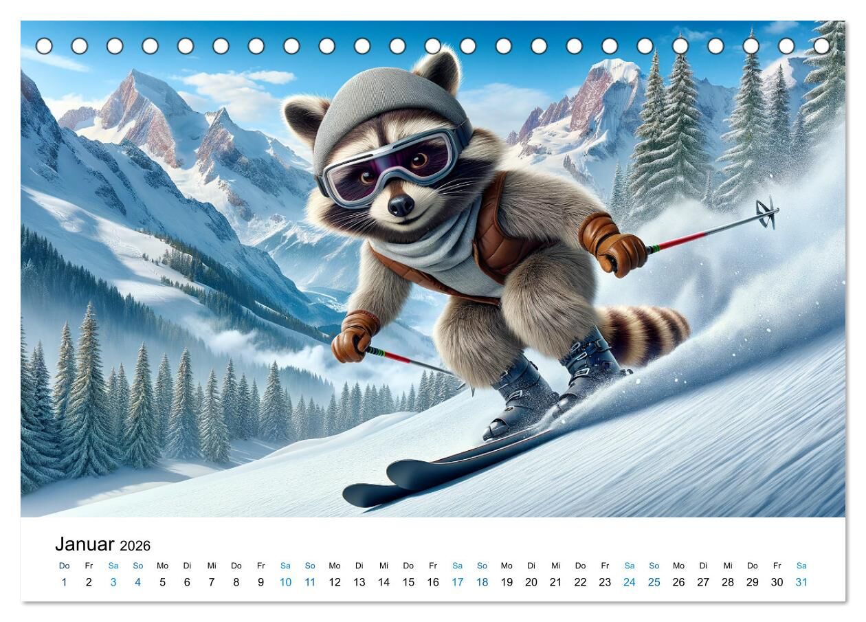 Tauche ein in die bezaubernde Welt der Waschbären mit unserem einzigartigen Kalender! Jeder Monat präsentiert eine wunderschön detaillierte, KI-generierte Szene, die die verspielte Natur dieser charmanten Tiere in einem monatsspezifischen, lustigen Kontext ein...