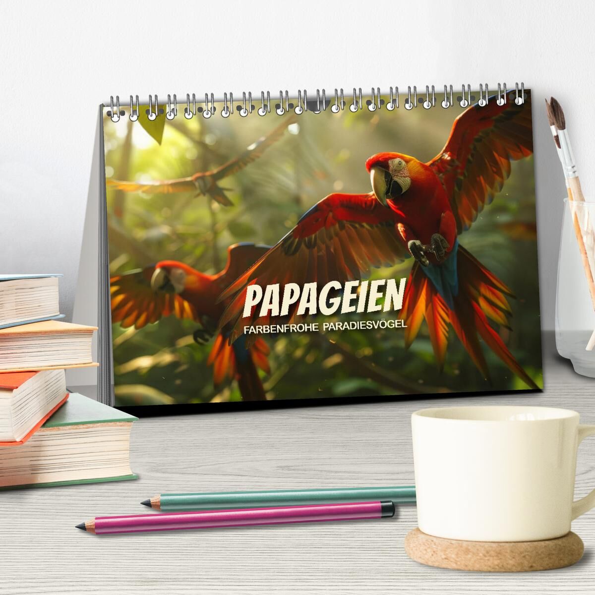 Papageien - Farbenfrohe Paradiesvögel (Tischkalender 2026 DIN A5 quer), CALVENDO Monatskalender