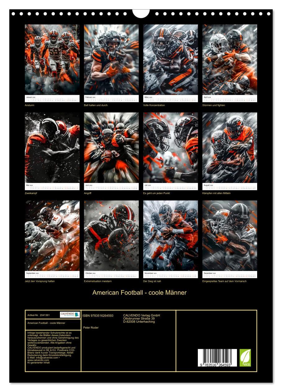 American Football - coole Männer (Wandkalender 2026 DIN A3 hoch), CALVENDO Monatskalender