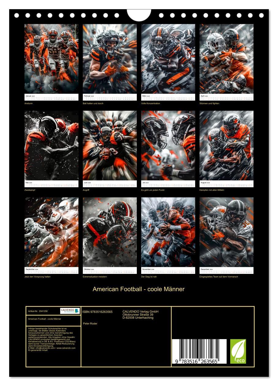 American Football - coole Männer (Wandkalender 2026 DIN A4 hoch), CALVENDO Monatskalender