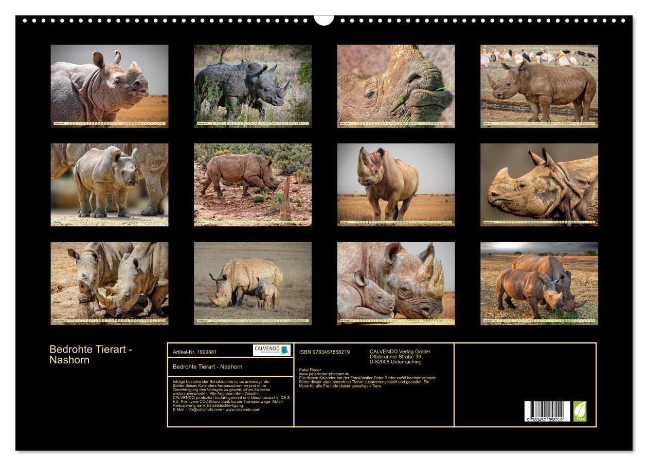 Bedrohte Tierart - Nashorn (Wandkalender 2026 DIN A2 quer), CALVENDO Monatskalender