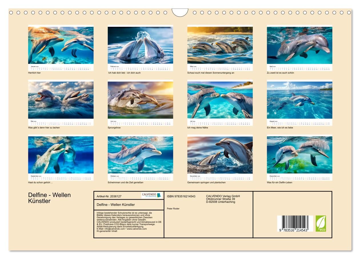 Tauchen Sie ein in die faszinierende Welt der Delfine. Monat für Monat erleben Sie atemberaubende Aufnahmen dieser außergewöhnlichen Meerestiere ob als elegante Schwimmer unter der Wasseroberfläche, verspielt turtelnd oder in einem spektakulären Sprung hoch üb...