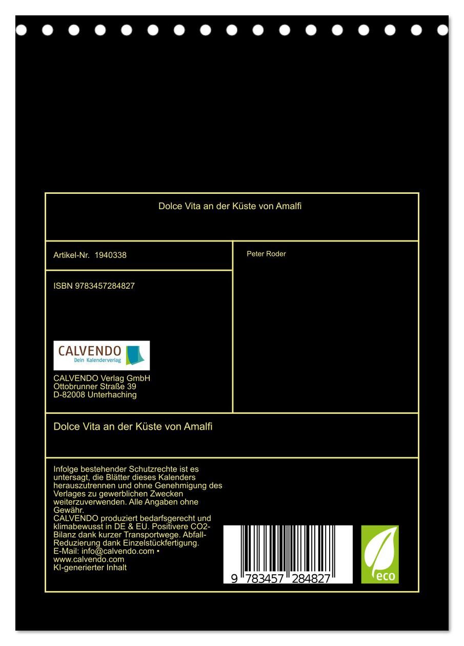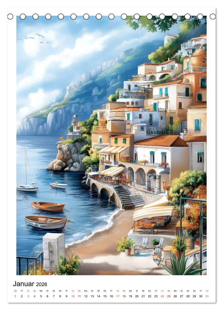 Die Amalfiküste ein Sehnsuchtsort, der mit seinem mediterranen Charme verzaubert. Farbenfrohe Häuser schmiegen sich an steile Klippen, das tiefblaue Meer glitzert in der Sonne, und enge Gassen laden zum Flanieren ein. In diesem Kalender erwacht die Magie Itali...
