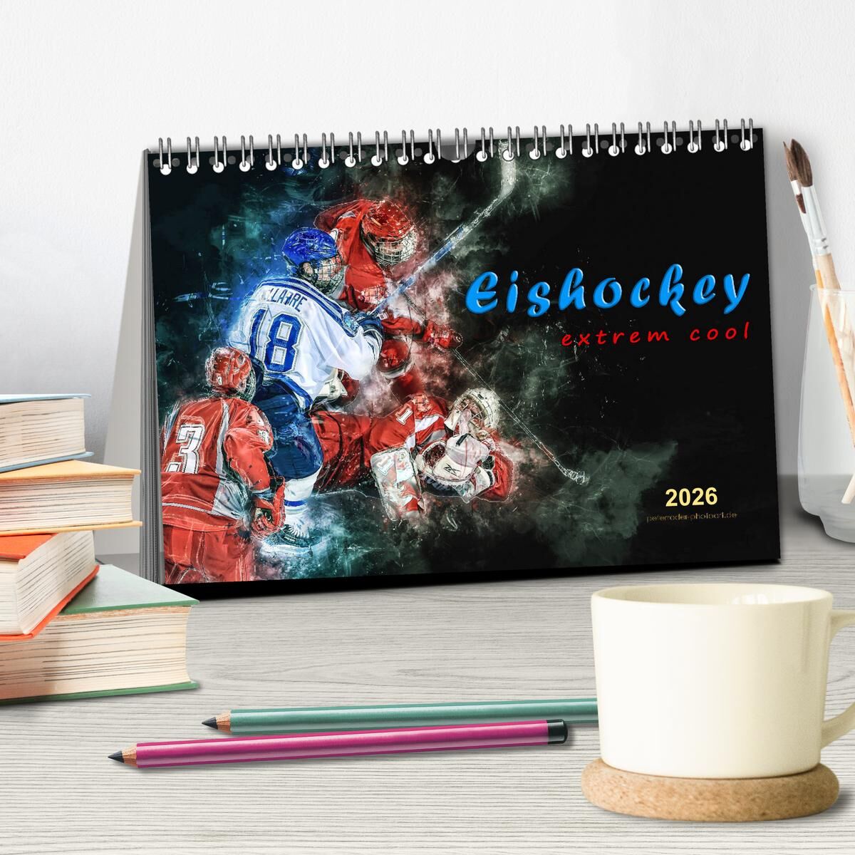 Eishockey - extrem cool (Tischkalender 2026 DIN A5 quer), CALVENDO Monatskalender