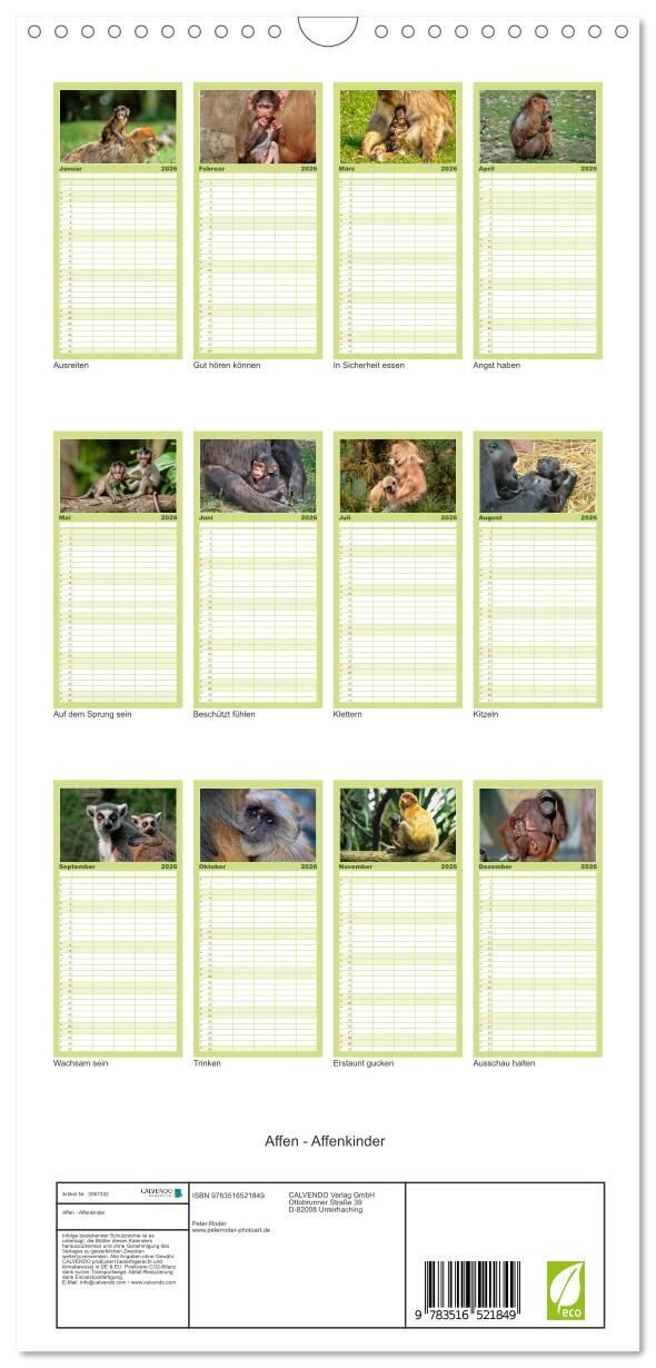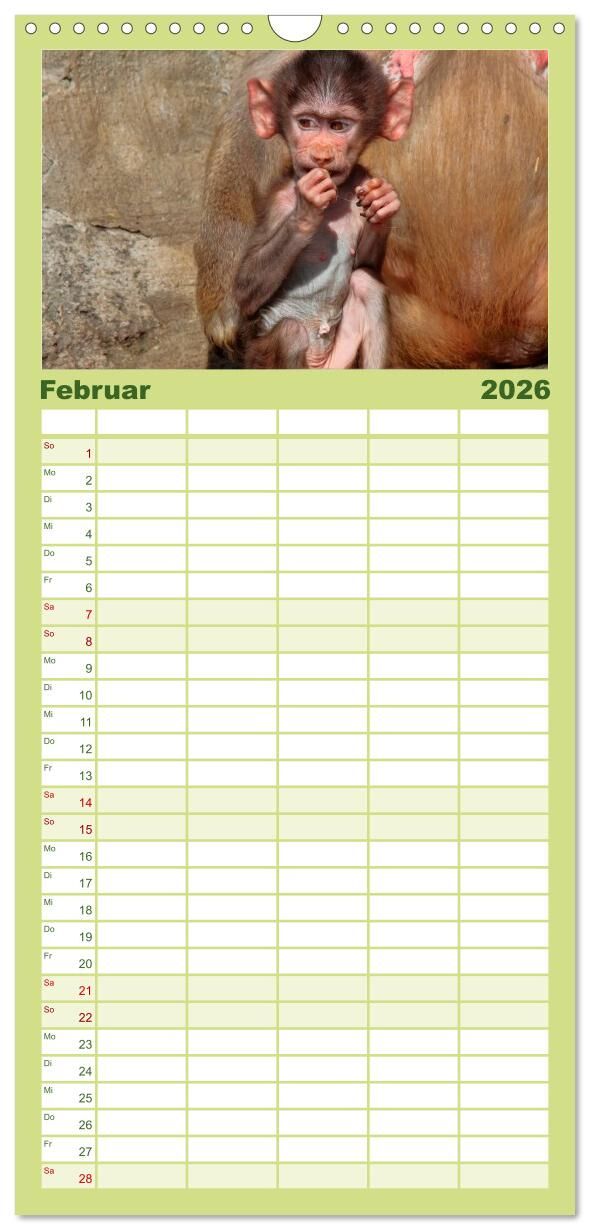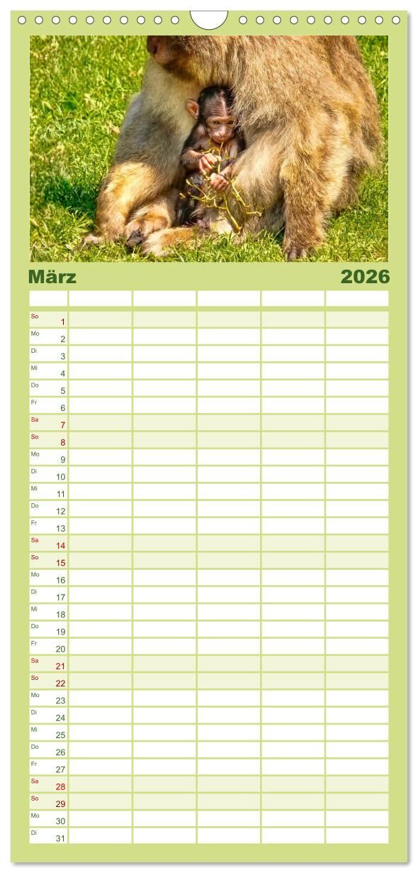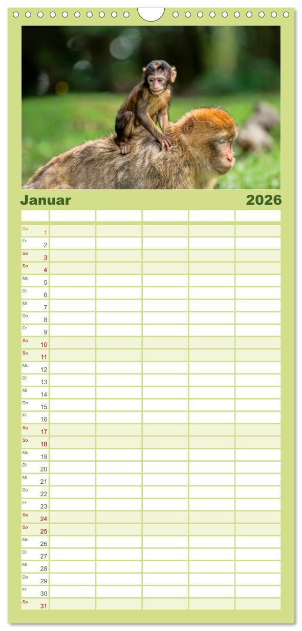 Familienplaner 2026 - Affen - Affenkinder mit 5 Spalten (Wandkalender, 21 x 45 cm) CALVENDO