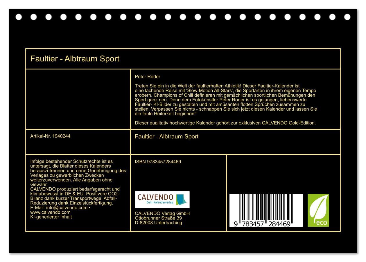 Faultier - Albtraum Sport (Tischkalender 2026 DIN A5 quer), CALVENDO Monatskalender