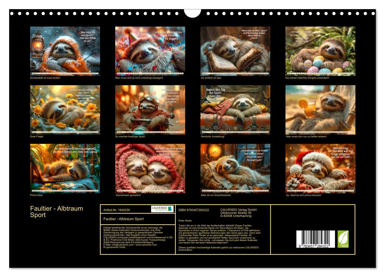 Faultier - Albtraum Sport (Wandkalender 2026 DIN A3 quer), CALVENDO Monatskalender