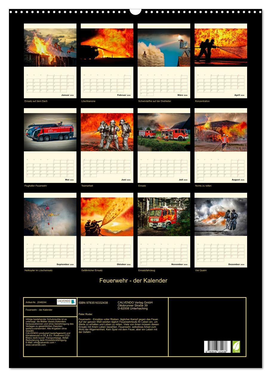 Feuerwehr - der Kalender (Wandkalender 2026 DIN A2 hoch), CALVENDO Monatskalender