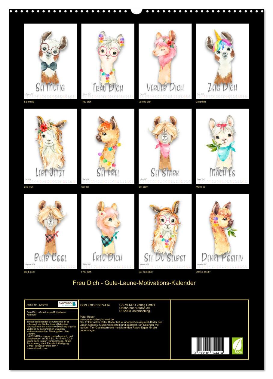Der Fotokünstler Peter Roder hat wunderschöne Aquarell-Bilder der urigen Alpakas zusammengestellt und gestaltet. Ein Kalender mit lustigen Tier-Gesichtern und motivierenden Ratschlägen für alle Lebenslagen.