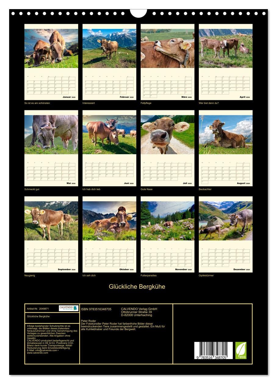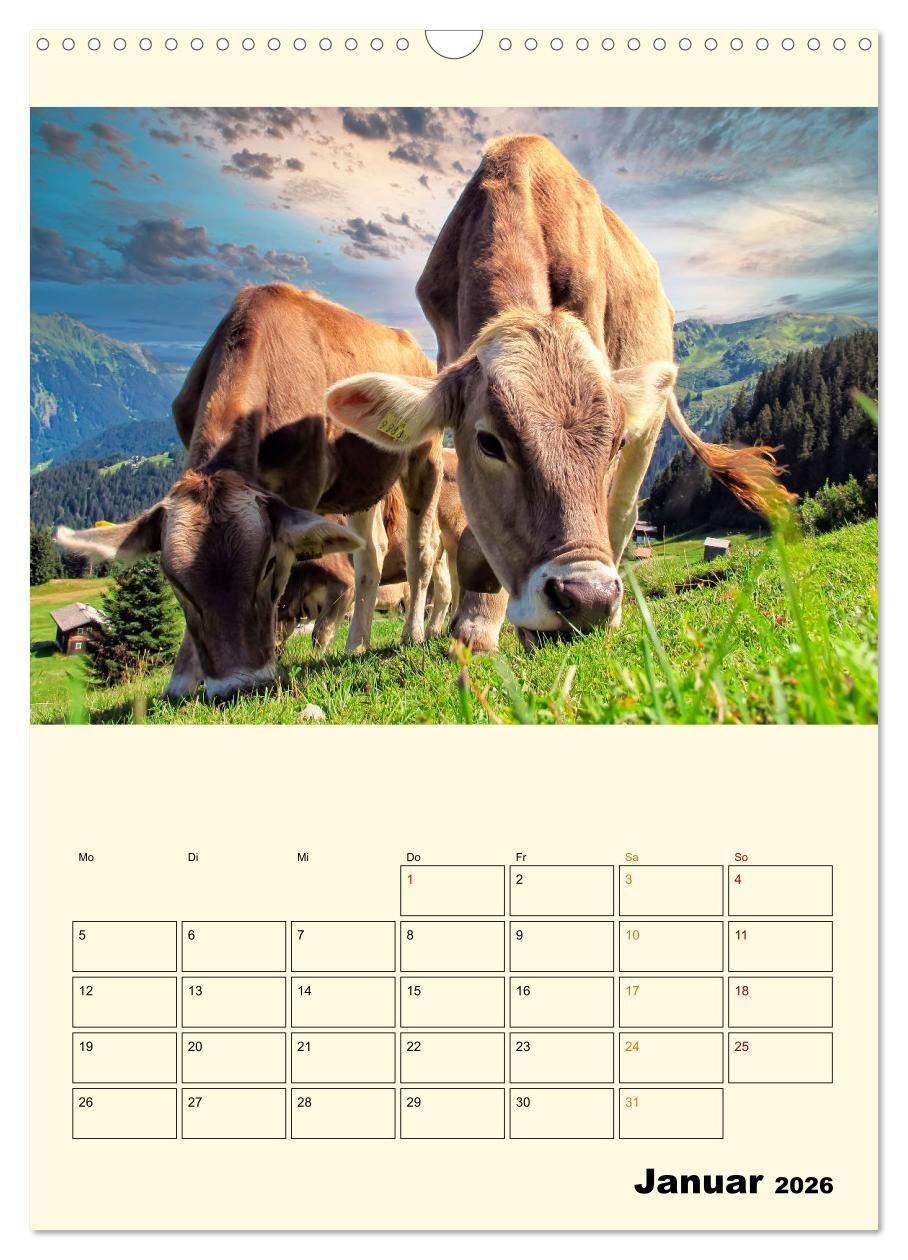 Glückliche Bergkühe (Wandkalender 2026 DIN A3 hoch), CALVENDO Monatskalender