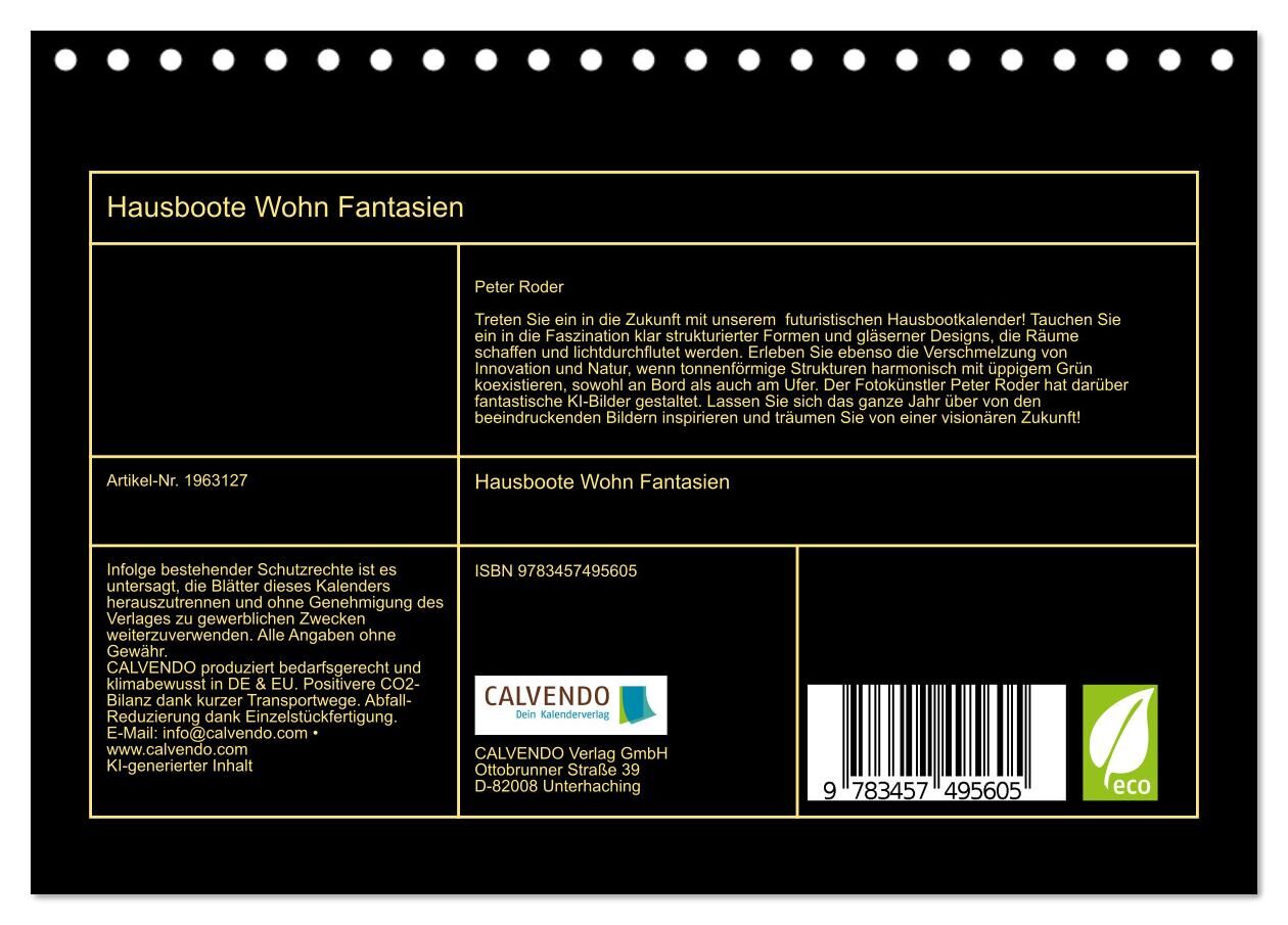 Treten Sie ein in die Zukunft mit unserem futuristischen Hausbootkalender! Tauchen Sie ein in die Faszination klar strukturierter Formen und gläserner Designs, die Räume schaffen und lichtdurchflutet werden. Erleben Sie ebenso die Verschmelzung von Innovation ...