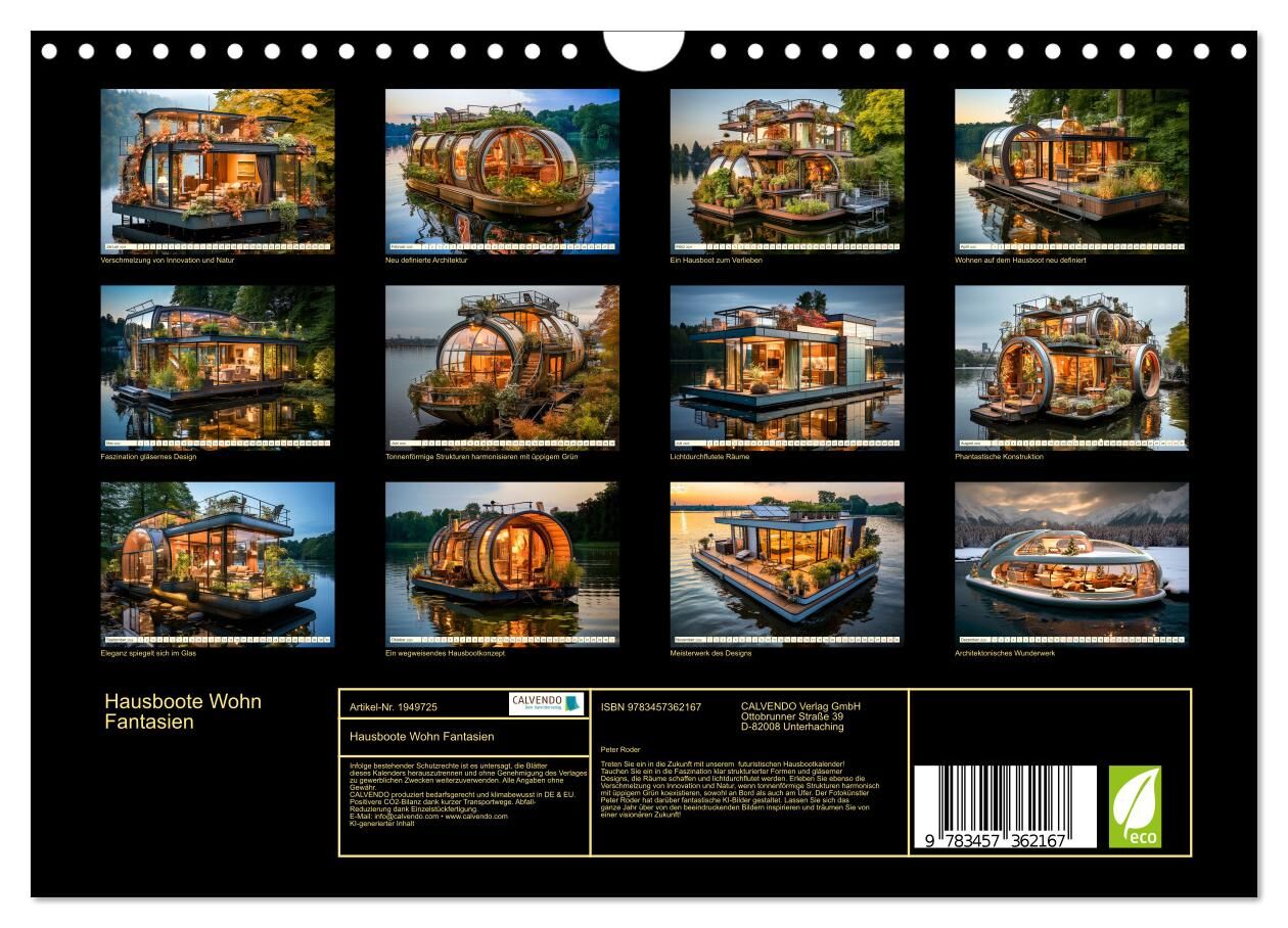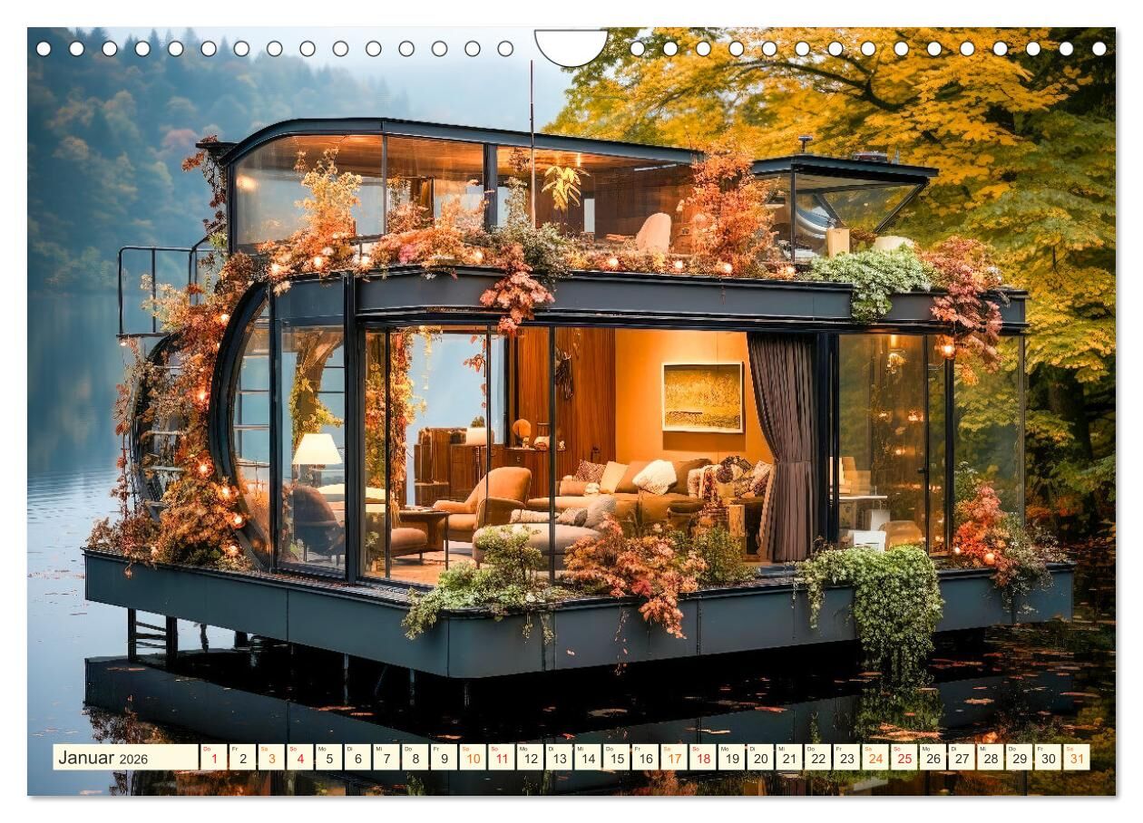 Treten Sie ein in die Zukunft mit unserem futuristischen Hausbootkalender! Tauchen Sie ein in die Faszination klar strukturierter Formen und gläserner Designs, die Räume schaffen und lichtdurchflutet werden. Erleben Sie ebenso die Verschmelzung von Innovation ...