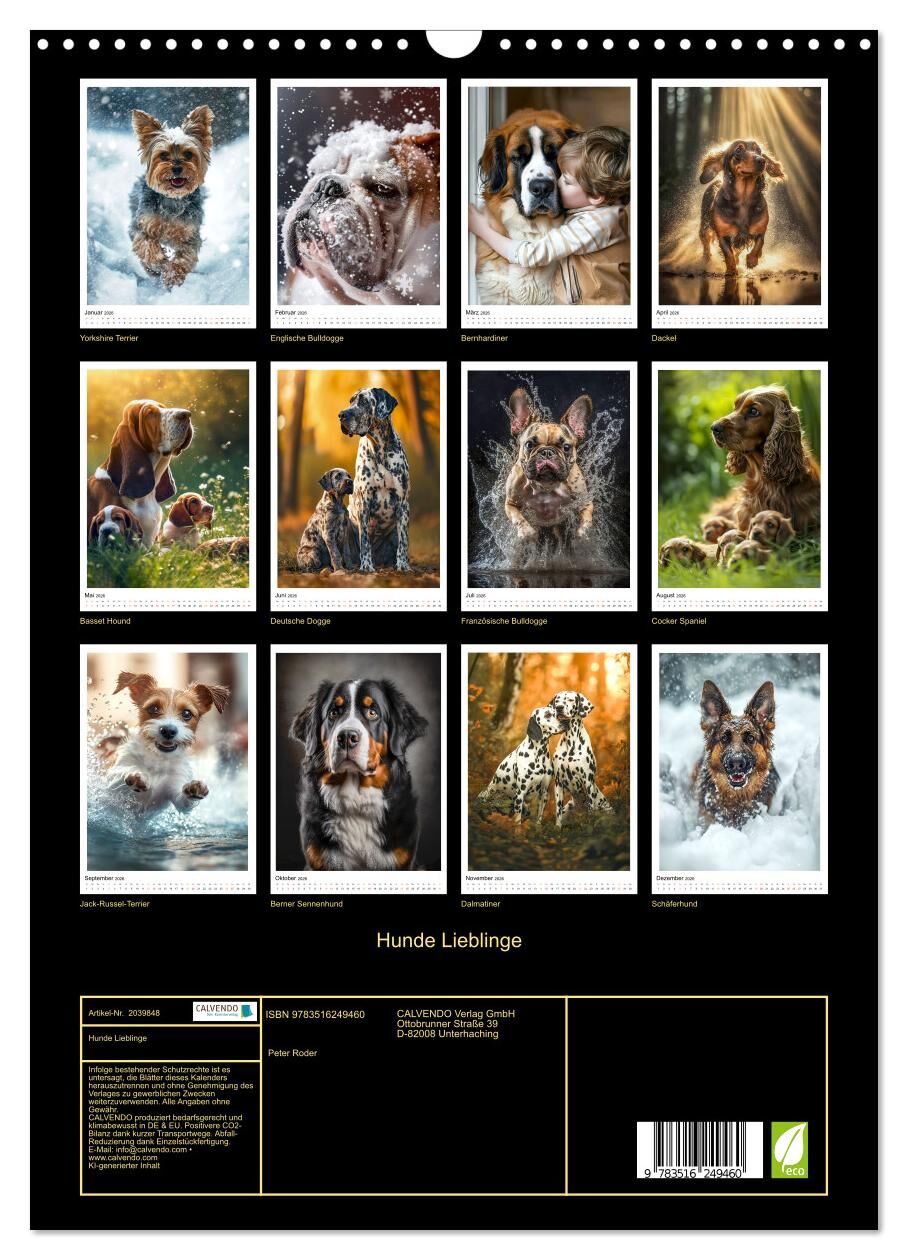 Dieser Hundekalender bringt die wunderbare Welt der Hunde in Ihr Zuhause. Denn sie sind mehr als nur Haustiere - sie sind treue Gefährten, liebevolle Kuscheltiere und ein Quell unendlicher Freude. Sie können ein Spaßbündel sein, das Sie immer zum Lachen bringt...