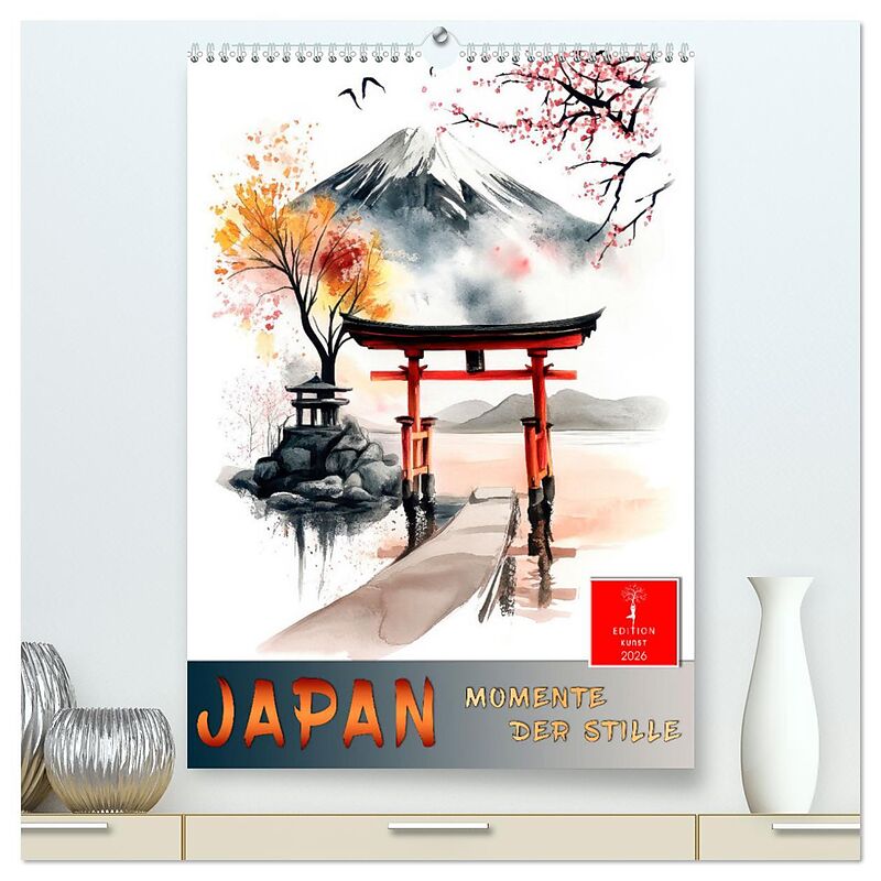 Tauchen Sie ein in die faszinierende Welt der traditionellen japanischen Landschaftsmalerei. Jeder Monat entführt Sie in die unvergleichliche Schönheit dieser Kunst. Bestaunen Sie den majestätischen Fuji, eingerahmt von einem Torii, das wie eine Einladung wirk...