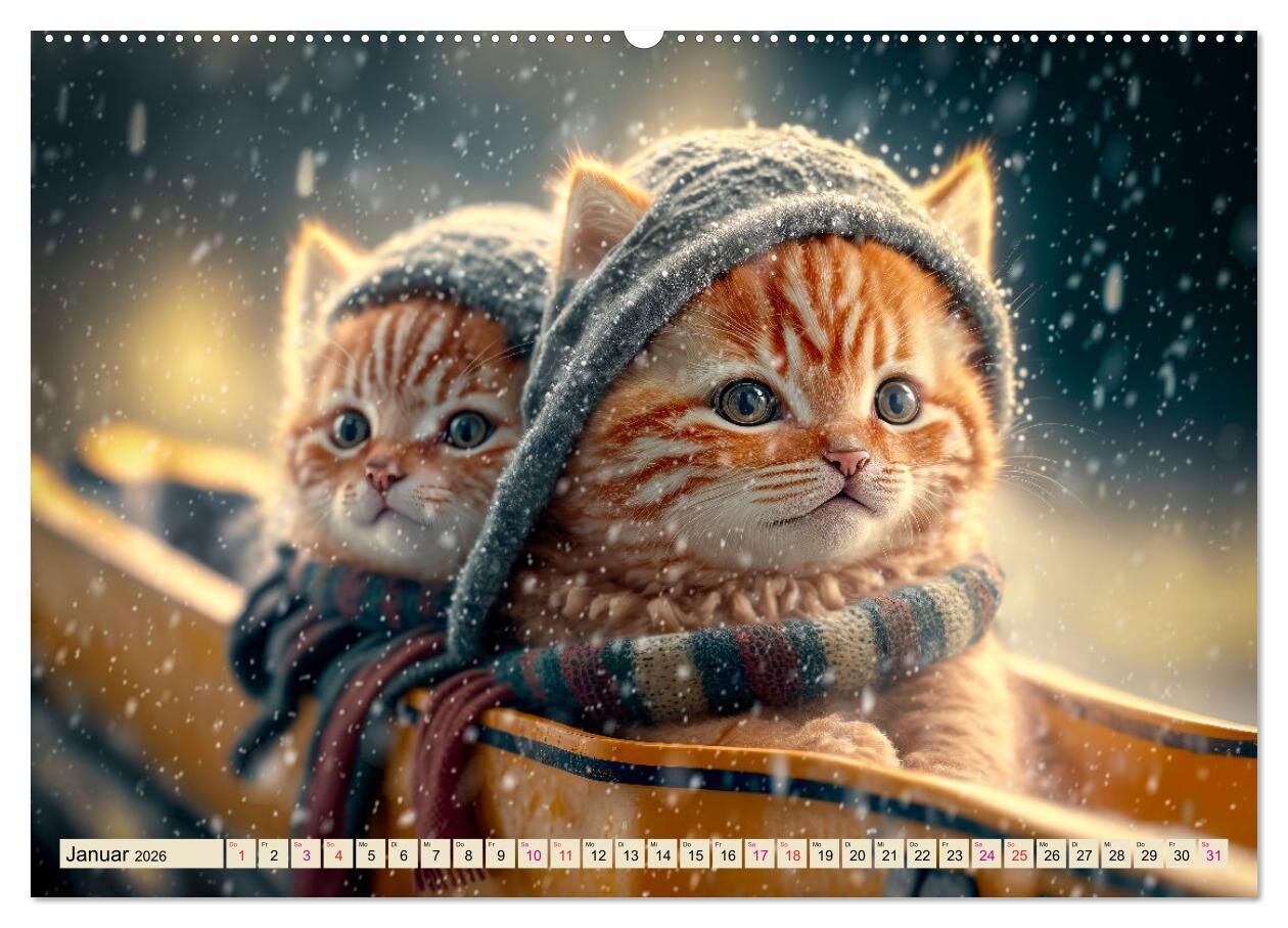 Katzen Freunde (hochwertiger Premium Wandkalender 2026 DIN A2 quer), Kunstdruck in Hochglanz