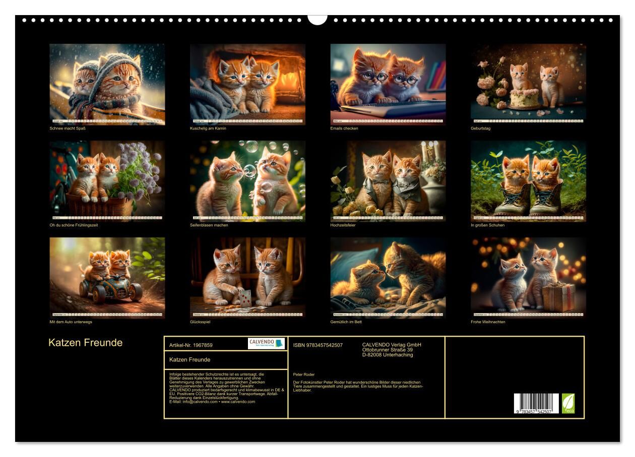 Katzen Freunde (Wandkalender 2026 DIN A2 quer), CALVENDO Monatskalender