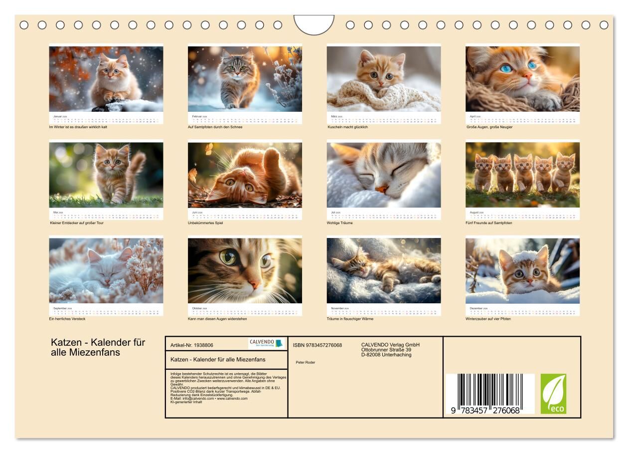Katzen - Kalender für alle Miezenfans (Wandkalender 2026 DIN A4 quer), CALVENDO Monatskalender