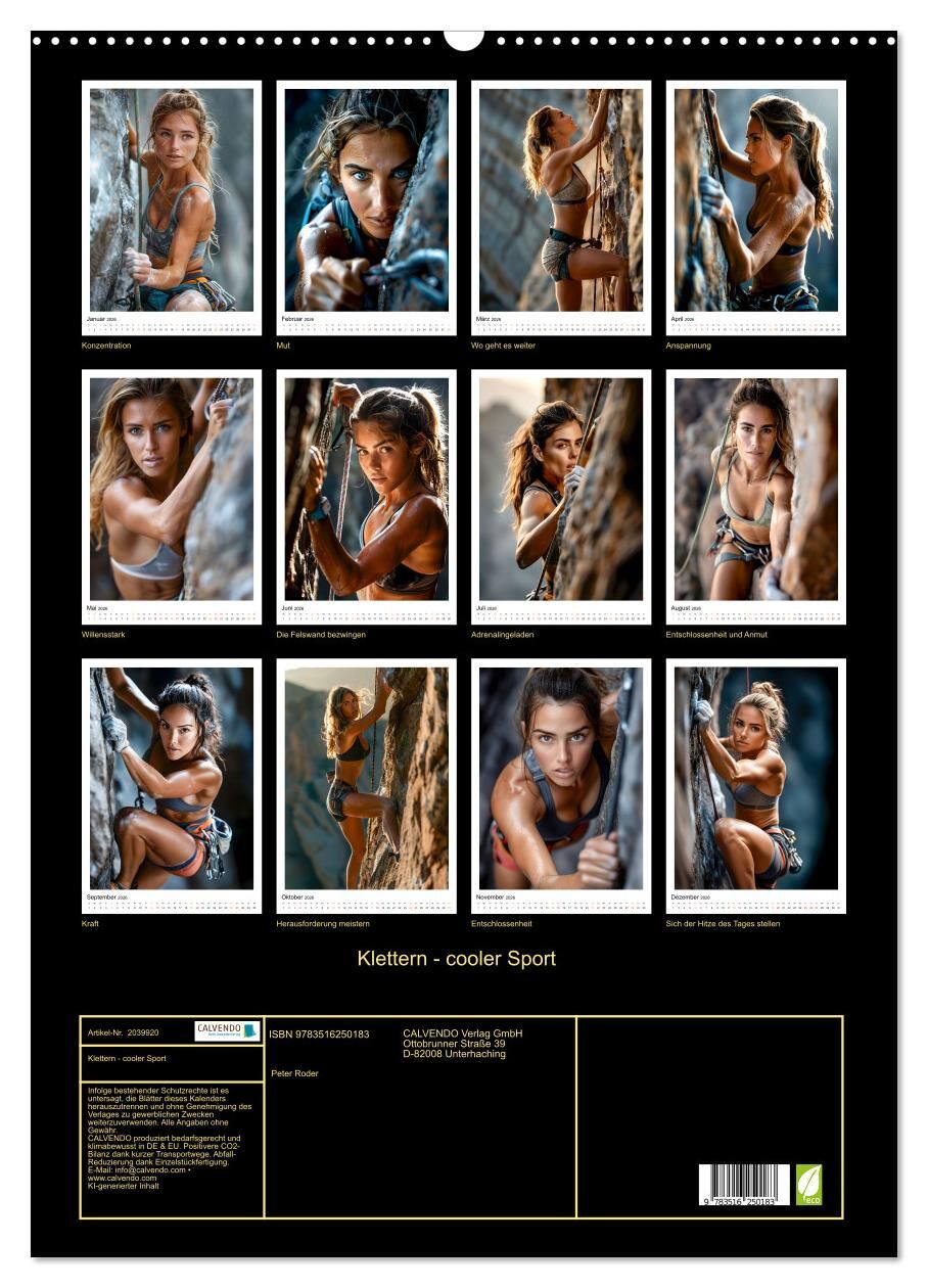 Dieser Kalender ist eine atemberaubende Hommage an furchtlose Frauen, die die steilsten Wände bezwingen und bei denen jeder Aufstieg eine Reise ins Unbekannte ist. Lassen Sie sich faszinieren von diesen mutigen Athletinnen, die sich mit Entschlossenheit und An...
