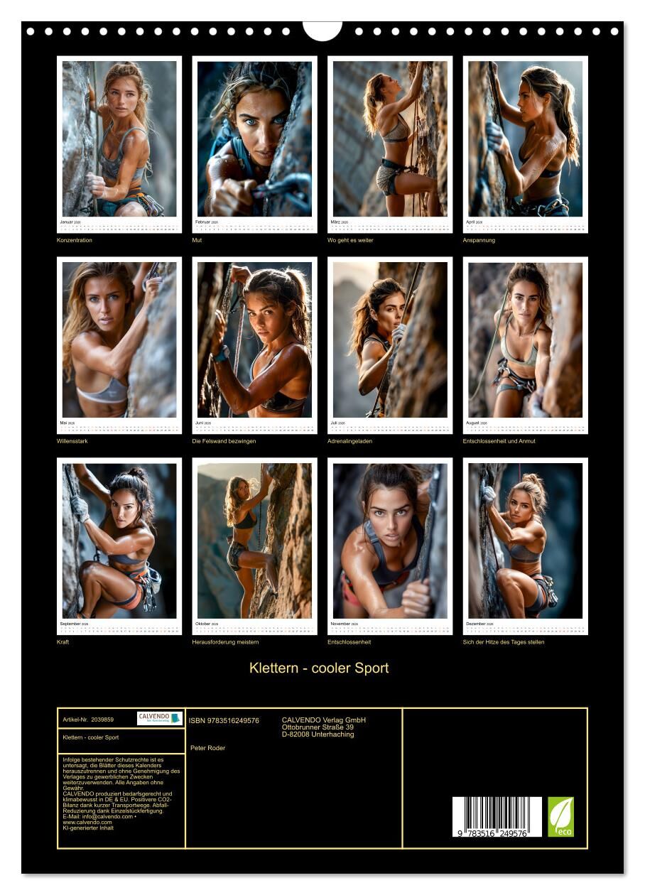 Dieser Kalender ist eine atemberaubende Hommage an furchtlose Frauen, die die steilsten Wände bezwingen und bei denen jeder Aufstieg eine Reise ins Unbekannte ist. Lassen Sie sich faszinieren von diesen mutigen Athletinnen, die sich mit Entschlossenheit und An...
