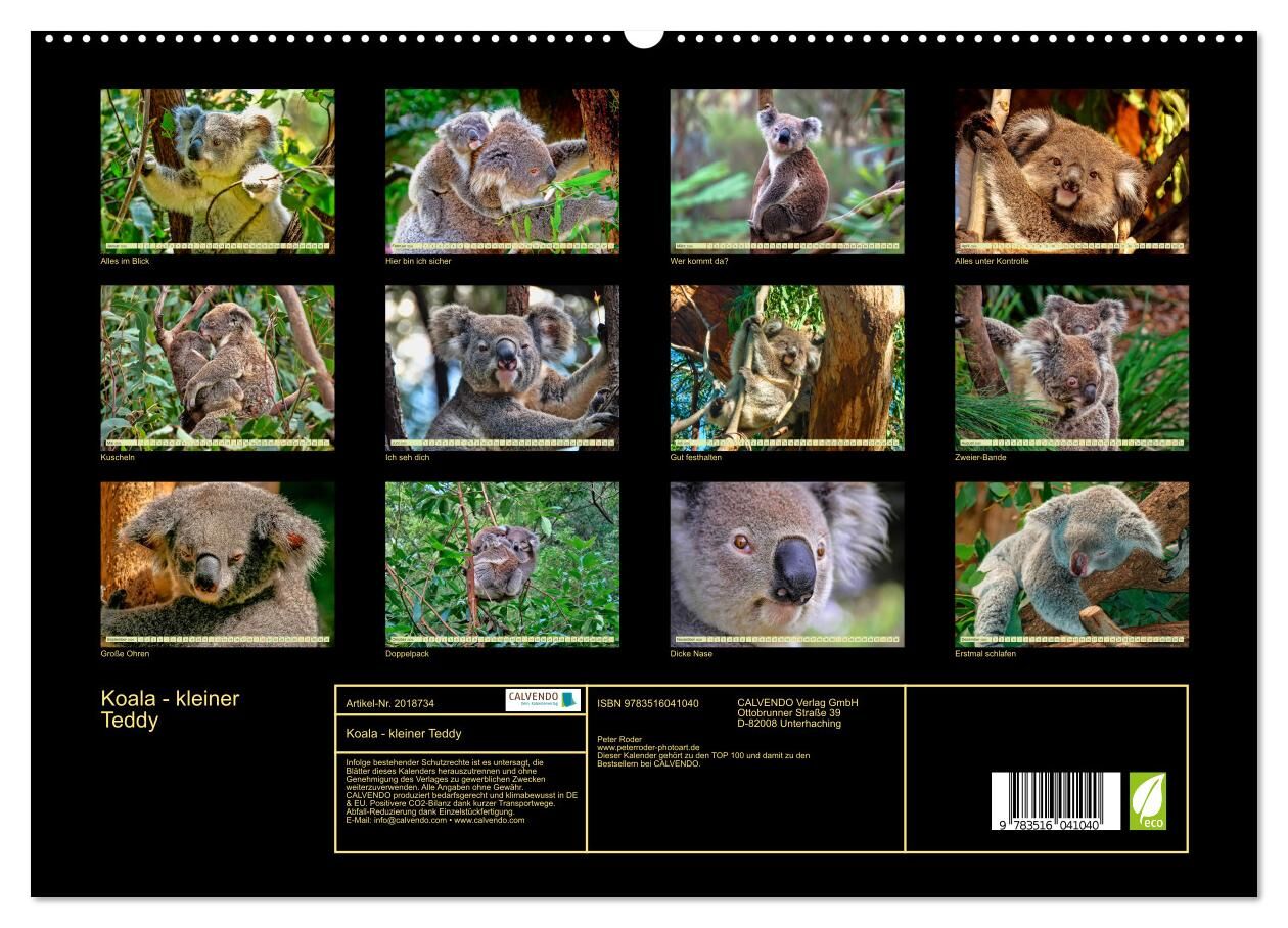 Koala - kleiner Teddy (hochwertiger Premium Wandkalender 2026 DIN A2 quer), Kunstdruck in Hochglanz