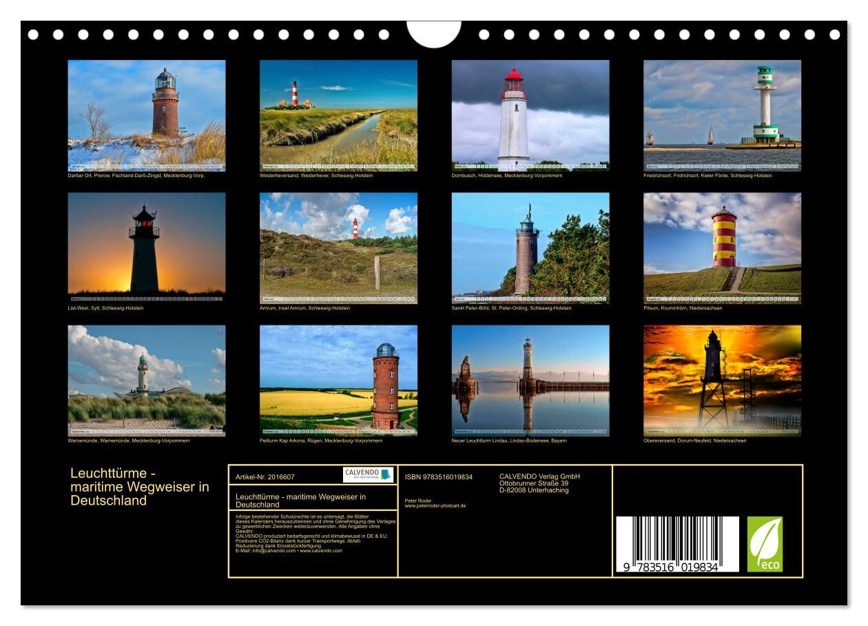Schon immer waren die Menschen von Leuchttürmen fasziniert. Für die Freunde dieser meist imposanten Bauwerke hat der Fotokünstler Peter Roder zwölf beeindruckende Aufnahmen von Leuchttürmen in Deutschland zusammengestellt und gestaltet, ein wunderschöner Kalen...