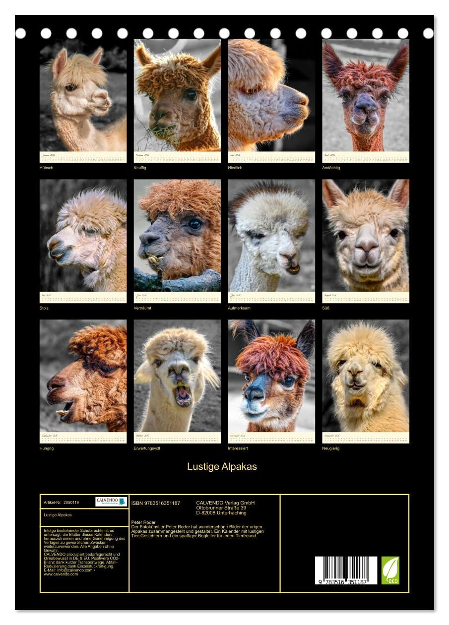 Der Fotokünstler Peter Roder hat wunderschöne Bilder der urigen Alpakas zusammengestellt und gestaltet. Ein Kalender mit lustigen Tier-Gesichtern und ein spaßiger Begleiter für jeden Tierfreund.