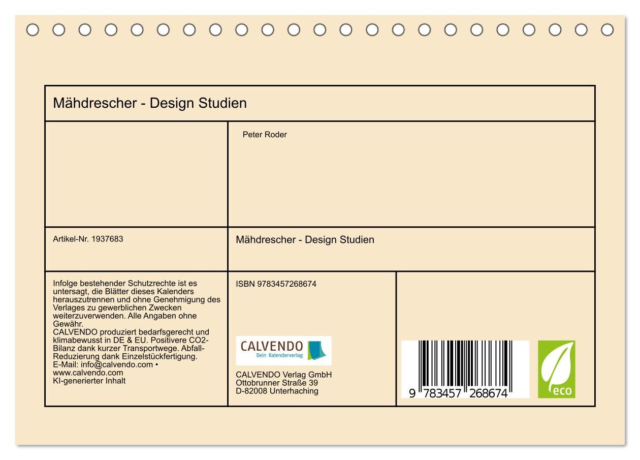 Innovation beginnt mit einer Skizze und dieser Kalender fängt genau diesen Moment ein. Jedes Blatt zeigt einen einzigartigen Mähdrescher, dessen Design fast futuristisch anmutet. Die Maschinen wirken, als wären sie speziell für unterschiedlichste Erntearten en...