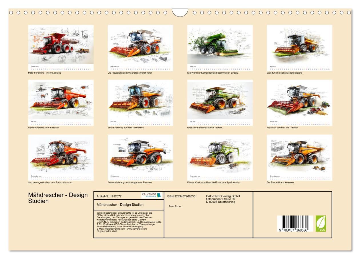 Innovation beginnt mit einer Skizze und dieser Kalender fängt genau diesen Moment ein. Jedes Blatt zeigt einen einzigartigen Mähdrescher, dessen Design fast futuristisch anmutet. Die Maschinen wirken, als wären sie speziell für unterschiedlichste Erntearten en...