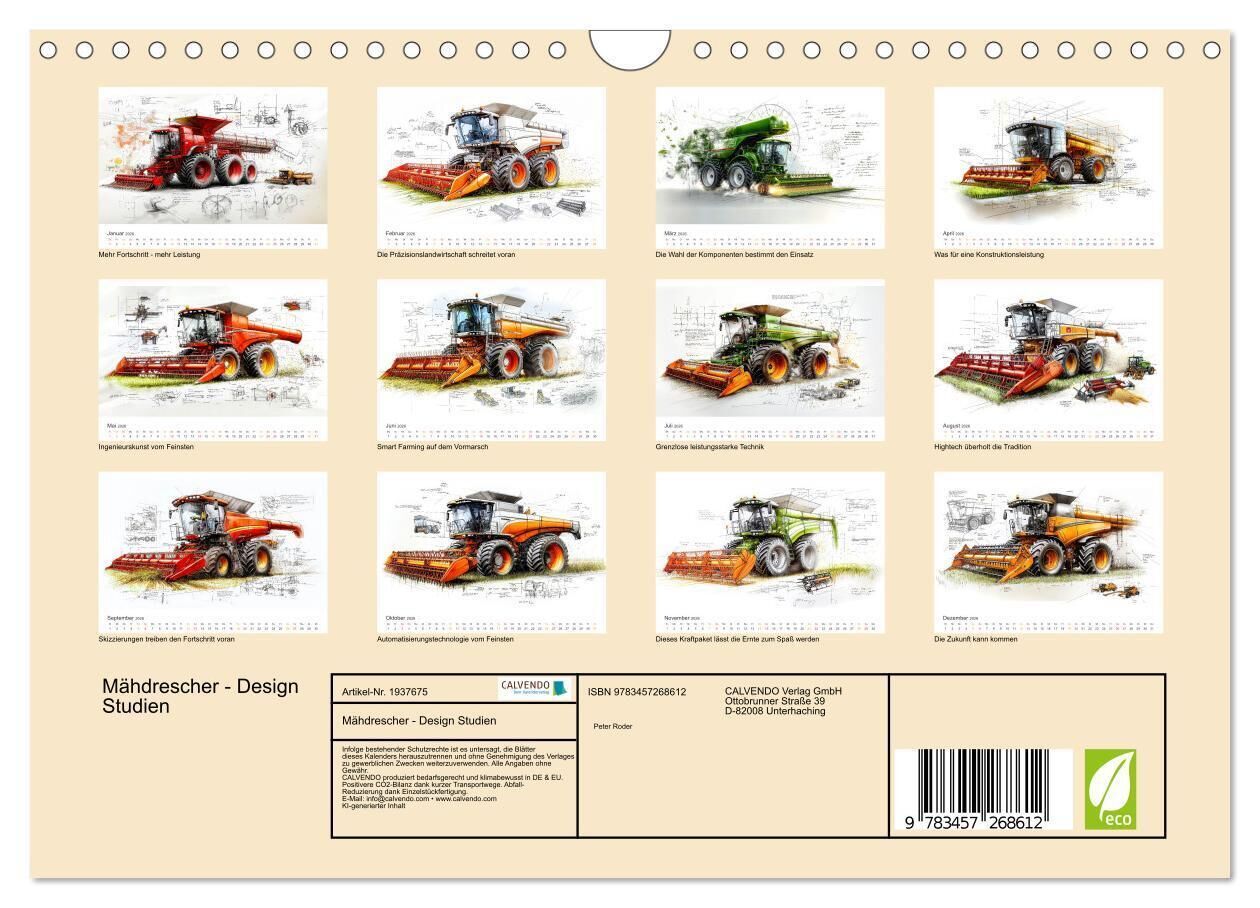 Innovation beginnt mit einer Skizze und dieser Kalender fängt genau diesen Moment ein. Jedes Blatt zeigt einen einzigartigen Mähdrescher, dessen Design fast futuristisch anmutet. Die Maschinen wirken, als wären sie speziell für unterschiedlichste Erntearten en...
