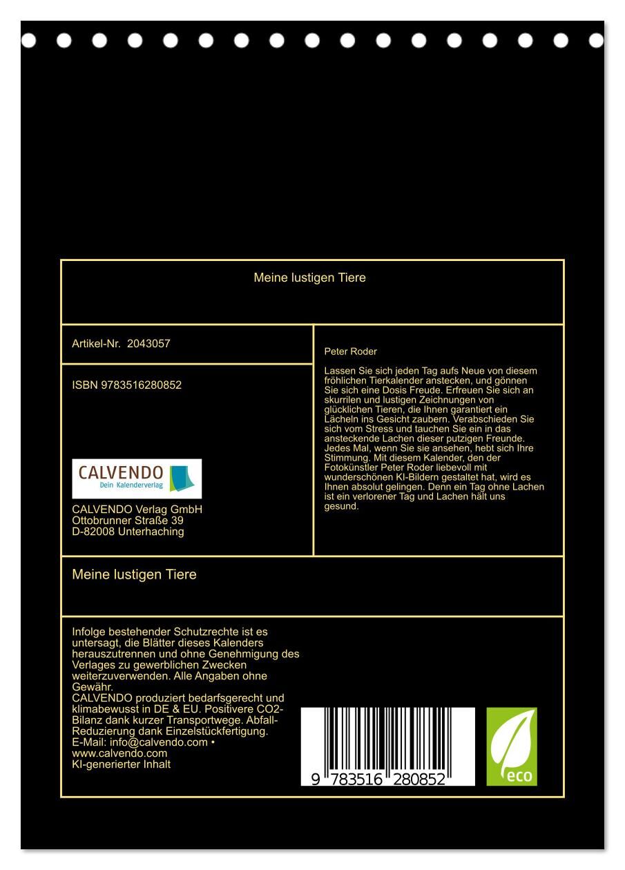 Meine lustigen Tiere (Tischkalender 2026 DIN A5 hoch), CALVENDO Monatskalender