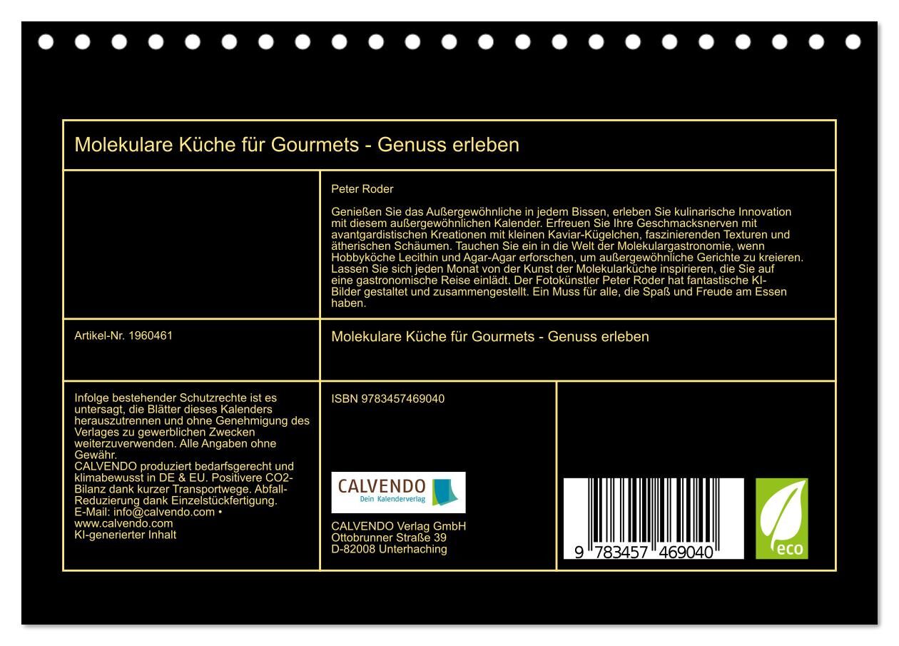 Molekulare Küche für Gourmets - Genuss erleben (Tischkalender 2026 DIN A5 quer), CALVENDO Monatskalender