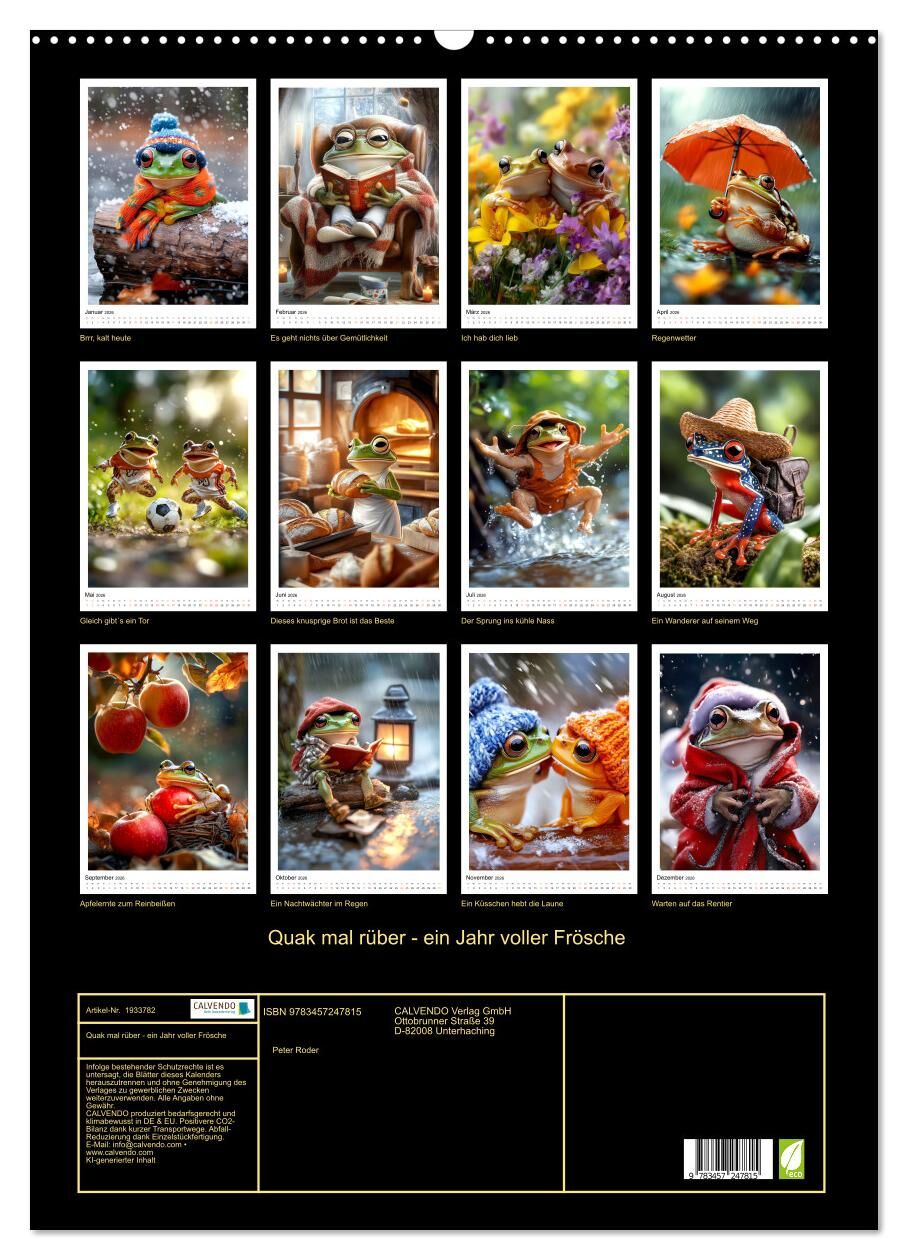 Quak mal rüber - ein Jahr voller Frösche (Wandkalender 2026 DIN A2 hoch), CALVENDO Monatskalender