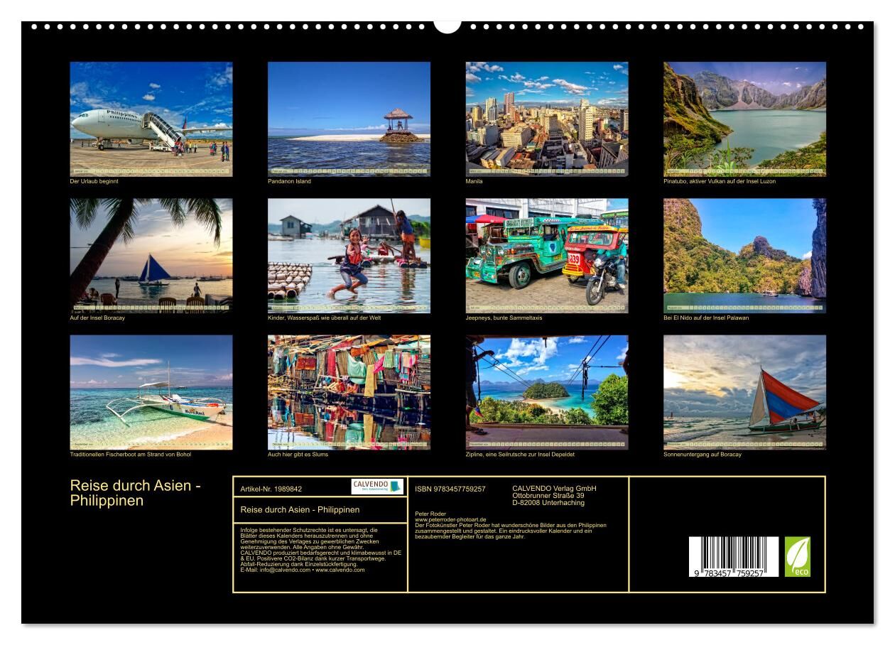 Der Fotokünstler Peter Roder hat wunderschöne Bilder aus den Philippinen zusammengestellt und gestaltet. Ein eindrucksvoller Kalender und ein bezaubernder Begleiter für das ganze Jahr.