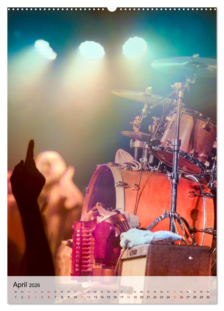 Schlagzeug live (hochwertiger Premium Wandkalender 2026 DIN A2 hoch), Kunstdruck in Hochglanz