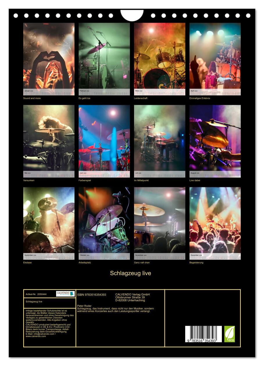 Schlagzeug live (Wandkalender 2026 DIN A4 hoch), CALVENDO Monatskalender