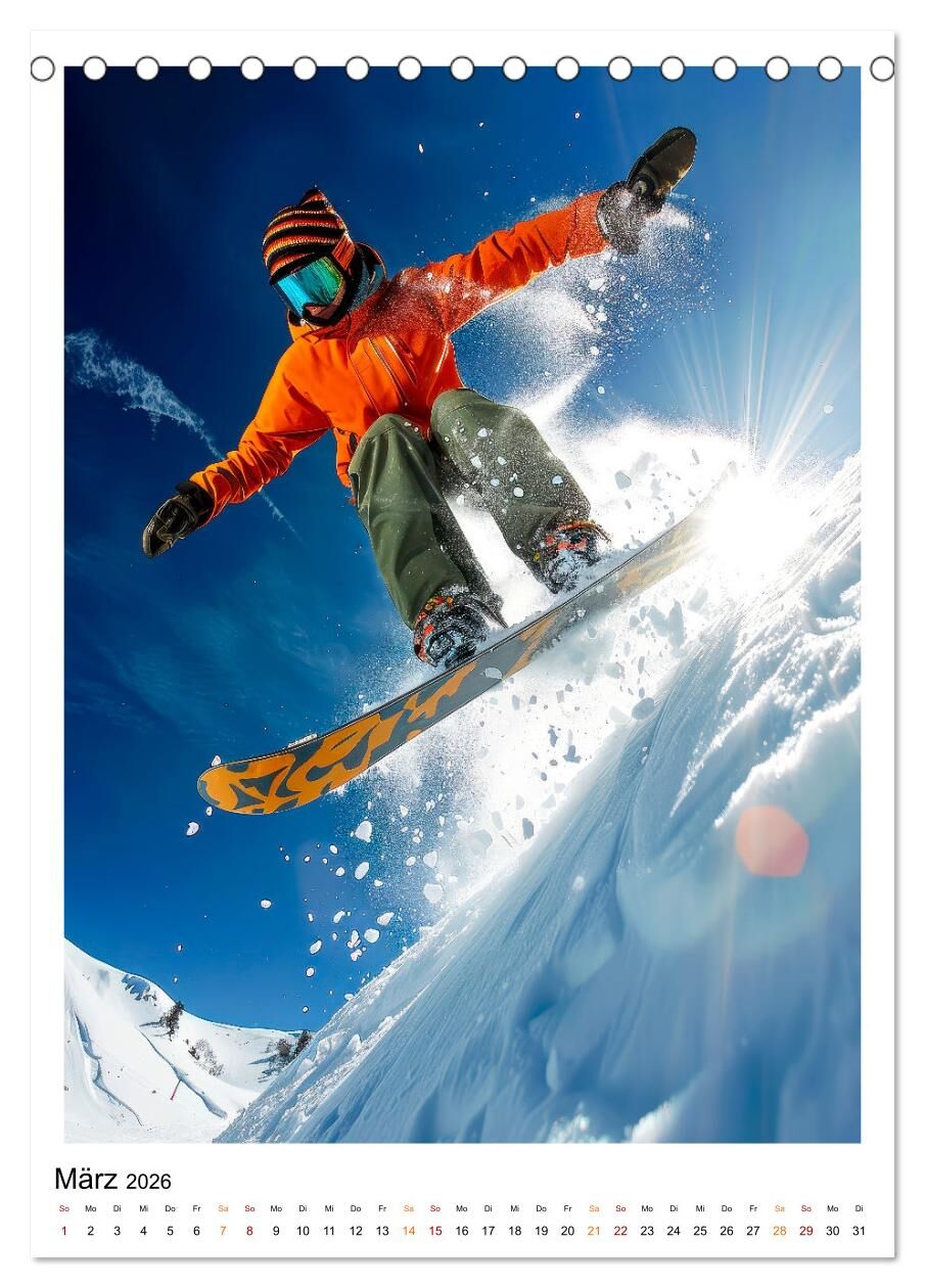 Snowboarden - coole Tage (Tischkalender 2026 DIN A5 hoch), CALVENDO Monatskalender