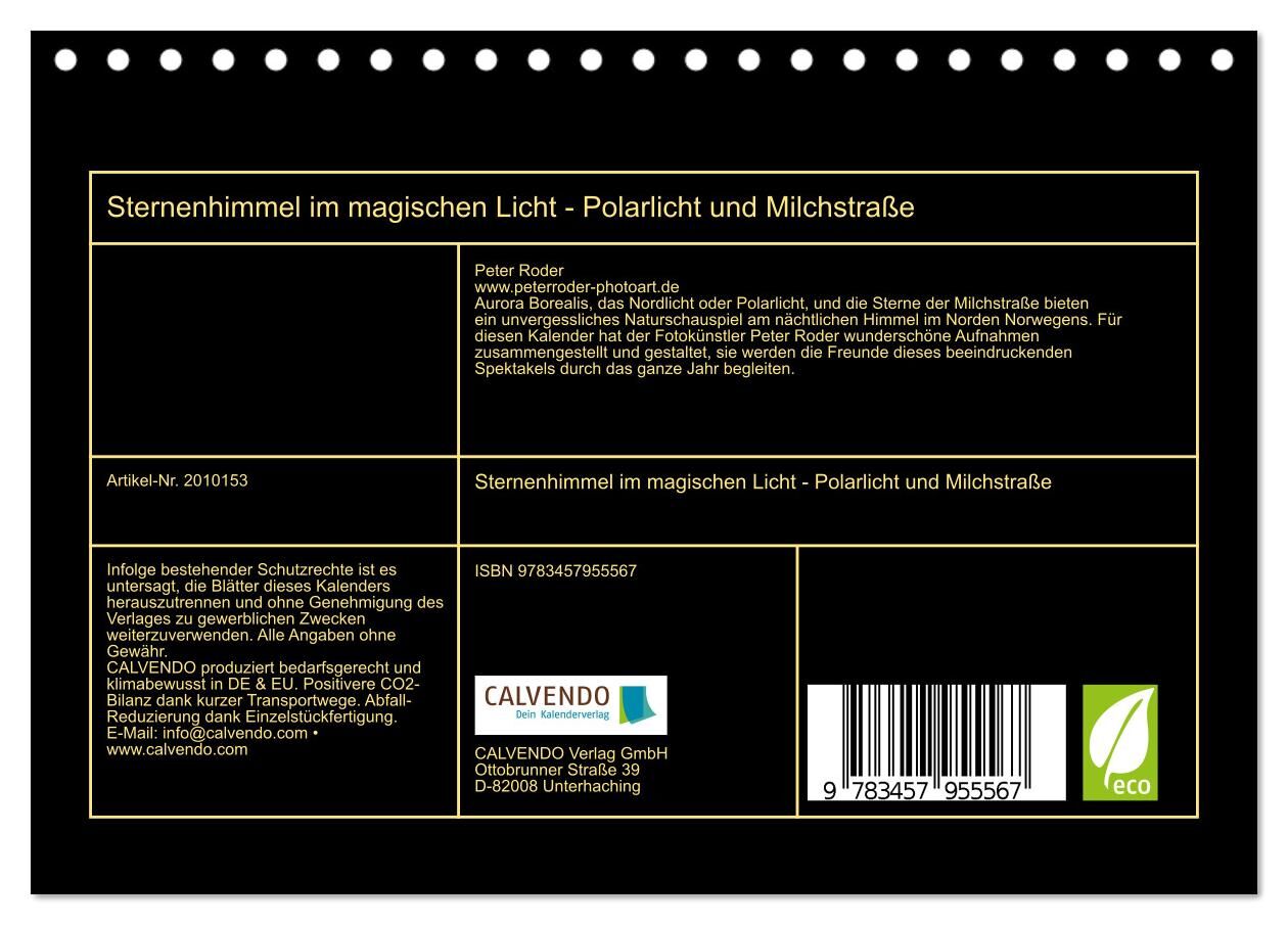Aurora Borealis, das Nordlicht oder Polarlicht, und die Sterne der Milchstraße bieten ein unvergessliches Naturschauspiel am nächtlichen Himmel im Norden Norwegens. Für diesen Kalender hat der Fotokünstler Peter Roder wunderschöne Aufnahmen zusammengestellt un...