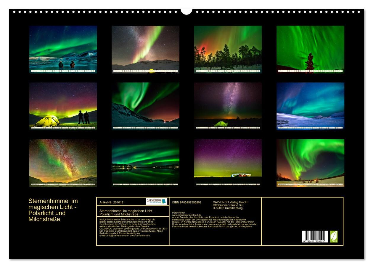 Aurora Borealis, das Nordlicht oder Polarlicht, und die Sterne der Milchstraße bieten ein unvergessliches Naturschauspiel am nächtlichen Himmel im Norden Norwegens. Für diesen Kalender hat der Fotokünstler Peter Roder wunderschöne Aufnahmen zusammengestellt un...