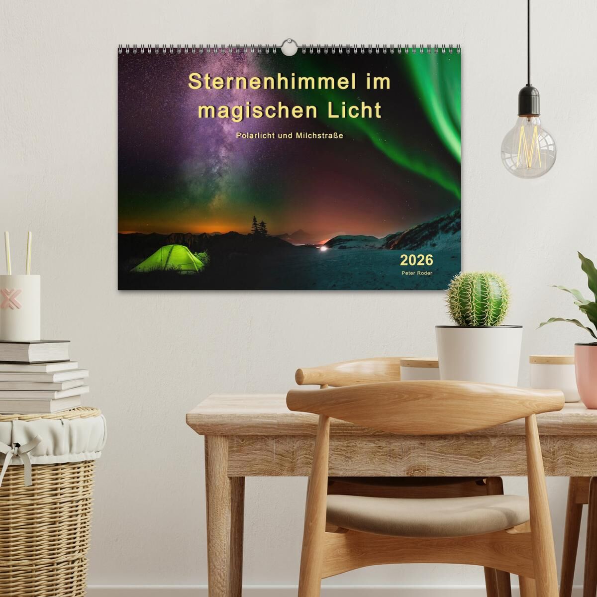 Sternenhimmel im magischen Licht - Polarlicht und Milchstraße (Wandkalender 2026 DIN A3 quer), CALVENDO Monatskalender