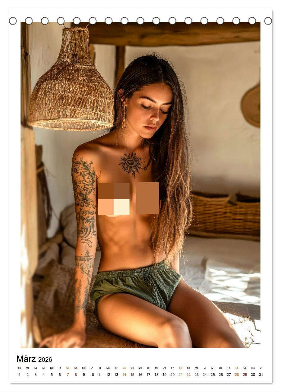 Tauchen Sie ein in erotische KI-Bilder mit sinnlich schönen Frauen und Tattoos, die unter die Haut gehen. Tattoo-Kunst zum Träumen ein Kalender voller Eleganz und Erotik. Die perfekte Mischung aus heißer Ästhetik und künstlerischer Leidenschaft.