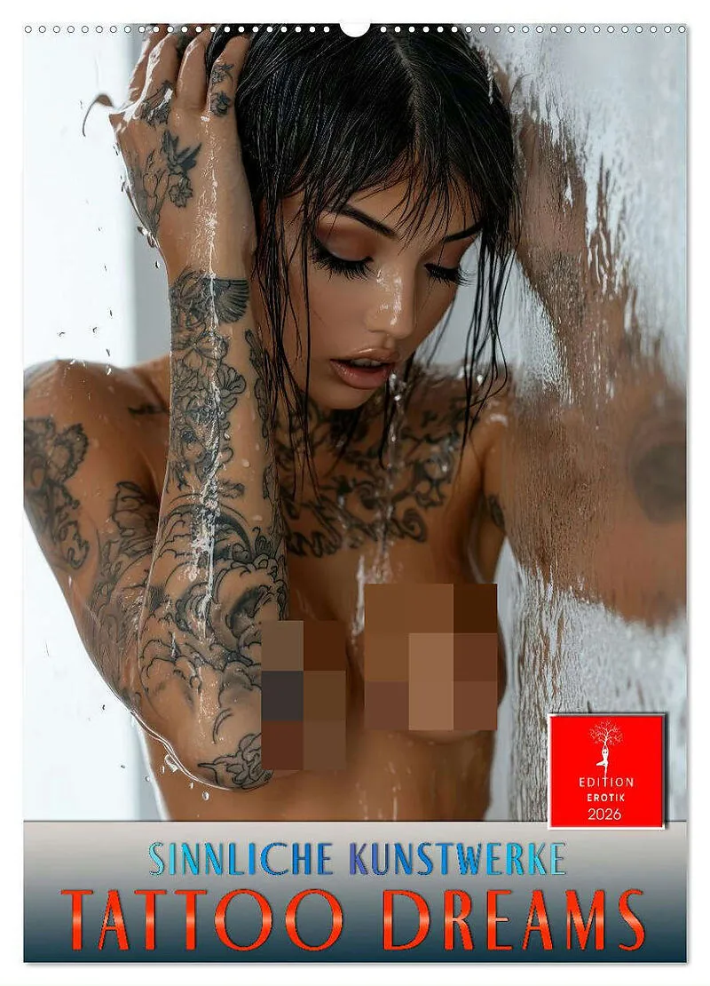 Tauchen Sie ein in erotische KI-Bilder mit sinnlich schönen Frauen und Tattoos, die unter die Haut gehen. Tattoo-Kunst zum Träumen ein Kalender voller Eleganz und Erotik. Die perfekte Mischung aus heißer Ästhetik und künstlerischer Leidenschaft.