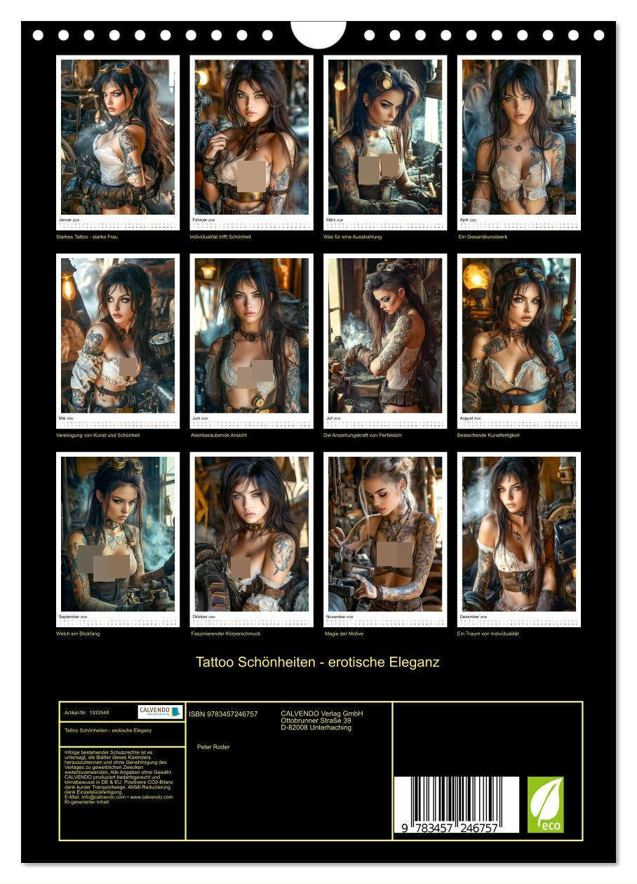 Tattoo Schönheiten - erotische Eleganz (Wandkalender 2026 DIN A4 hoch), CALVENDO Monatskalender